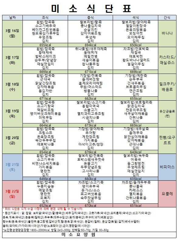 26년 3월 3주 식단표