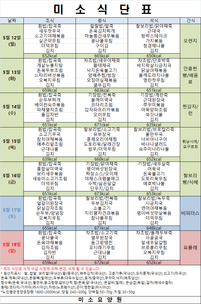 - 다음글5월1주 식단표 입니다. 25.05.02